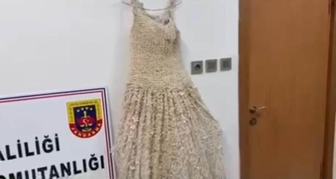 Kayseri İl Jandarma Komutanlığı ekipleri, yaptıkları istihbari çalışmalar sonucunda bir aracın kente uyuşturucu sokmaya çalıştığı bilgisine ulaştı. Ekipler tarafından durdurulan araçta yapılan aramada, iki gelinliğin üzerine boncuk şeklinde işlenmiş ve emdirilmiş 25 kilo 400 gram uyuşturucu madde ele geçirildi. Araçta bulunan 2 şahıs gözaltına alındı ve işlem başlatıldı.